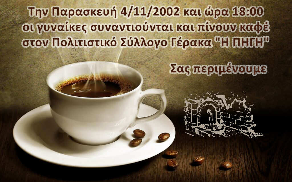 Ένα πολύ ευχάριστο απόγευμα πέρασαν οι γυναίκες της «ΠΗΓΗΣ» την Παρασκευή 4 Νοεμβρίου στα γραφεία του συλλόγου. Σε μια συγκέντρωση αυστηρά για γυναίκες πάνω από 30 κυρίες ήπιαν τον καφέ τους με τα ανάλογα βουτήματα και φυσικά με την ανάλογη κουβεντούλα.
