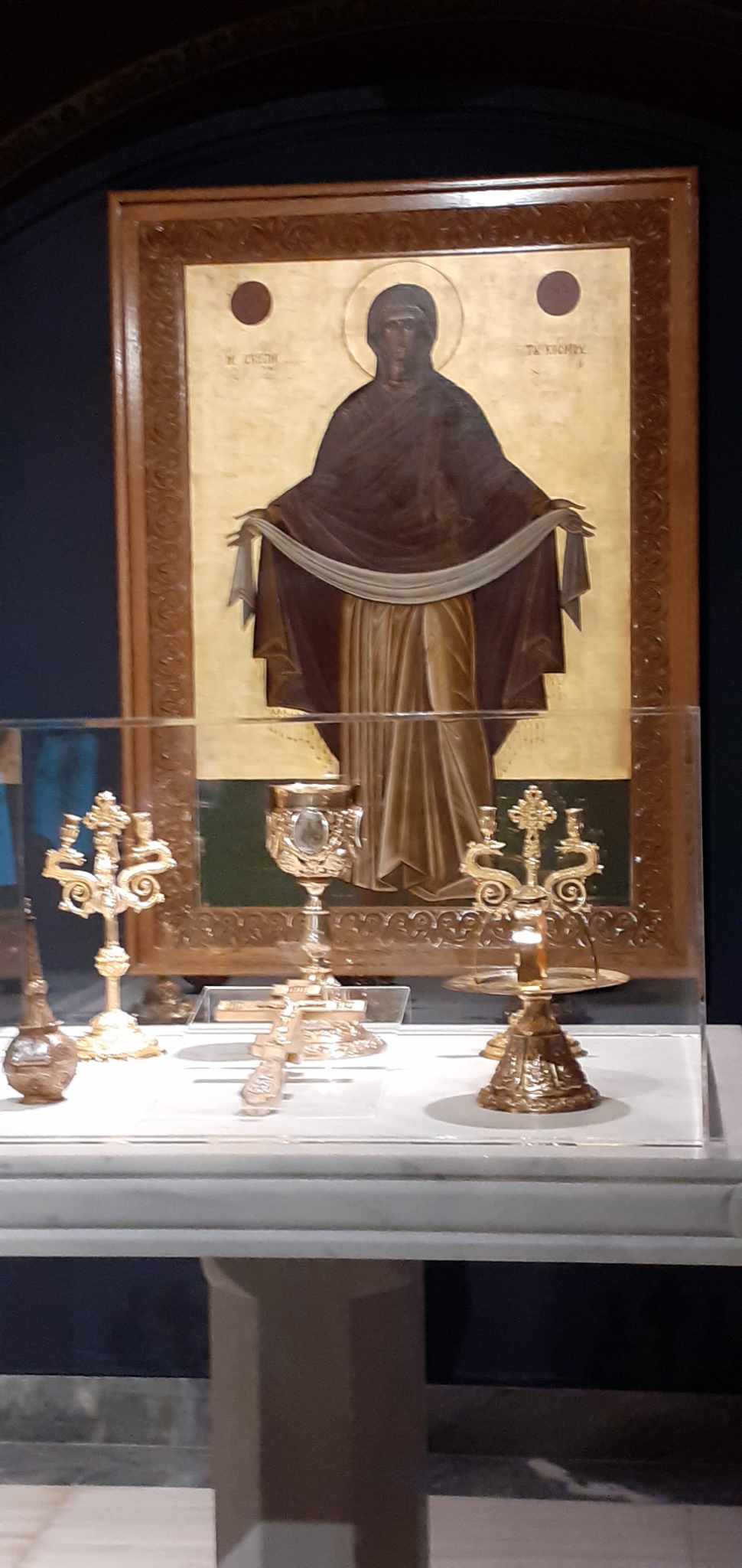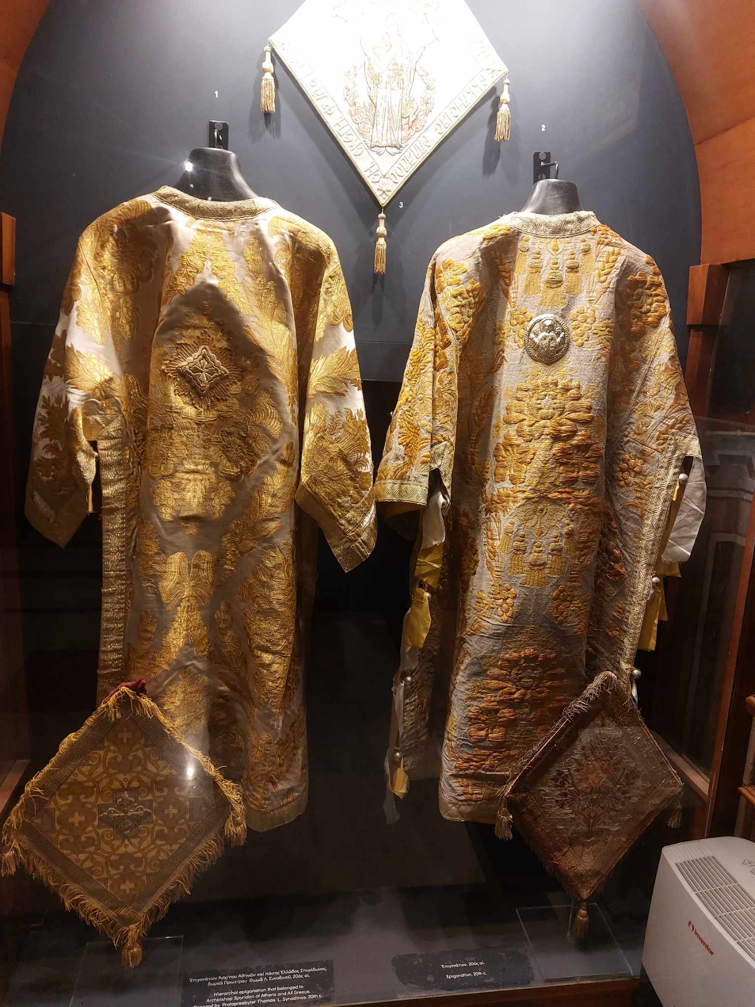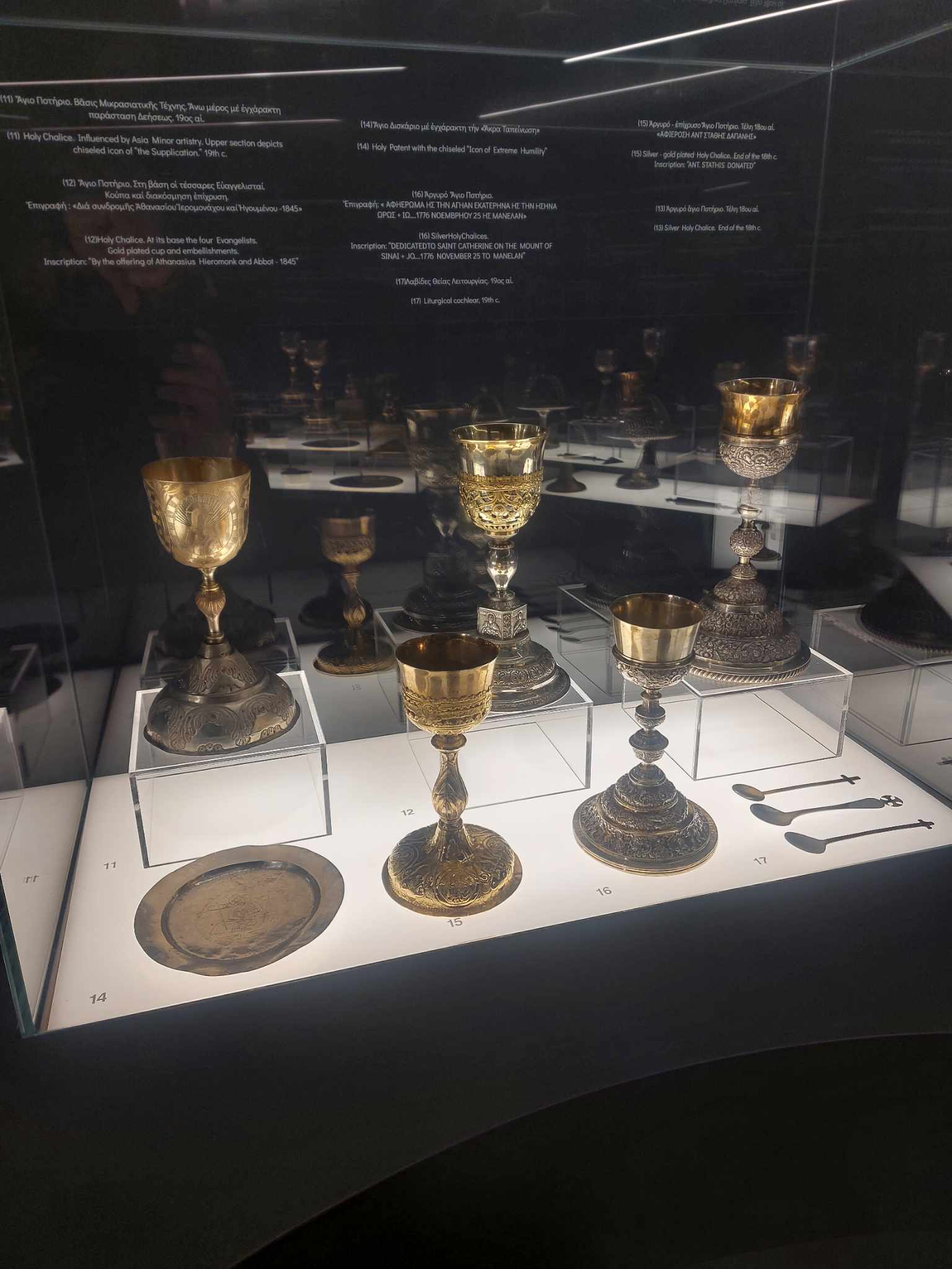 Στο μουσείο είδαμε μουσικά χειρόγραφα που γράφτηκαν πριν από εκατοντάδες χρόνια, ολόχρυσα ιερά δισκοπότηρα, βασιλικά δώρα προς τον ναό, Ευαγγέλια γραμμένα στα καραμανλίδικα, ακόμη και θρόνους στους οποίους εκκλησιάζονταν οι βασιλείς, τα περισσότερα εκ των οποίων ήταν δωρεές. Πολλά προέρχονταν από πρόσφυγες της Μικράς Ασίας, από τον Πόντο και την Κωνσταντινούπολη, όπως τα αριστουργήματα της φημισμένης κεντήστρας της Πόλης Δεσποινέτας, που χρονολογούνται από τον 17ο αιώνα και αποτελούν αντικείμενα μεγάλης ιστορικής αξίας, ή τα χρυσά κεντήματα της Πολίτισσας Κοκώνας του 19ου αιώνα. Άλλα έφτασαν εκεί από Έλληνες της Ρωσίας, της Δυτικής Ευρώπης, ακόμα και της Καλκούτας.