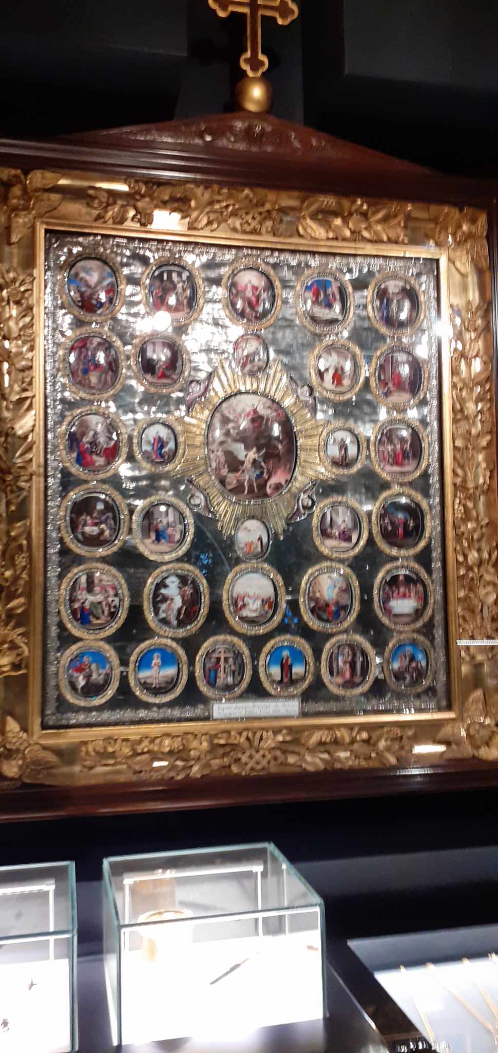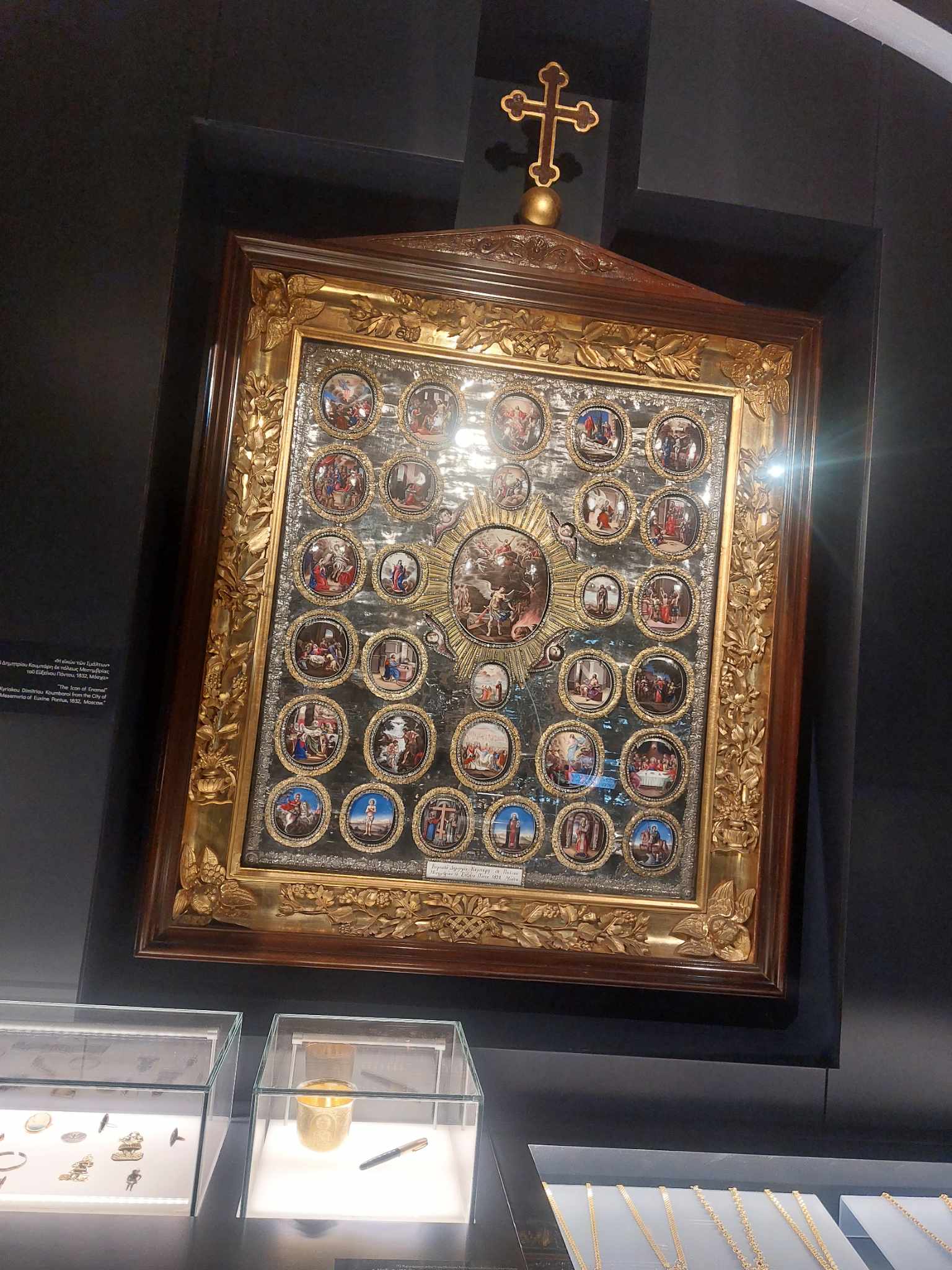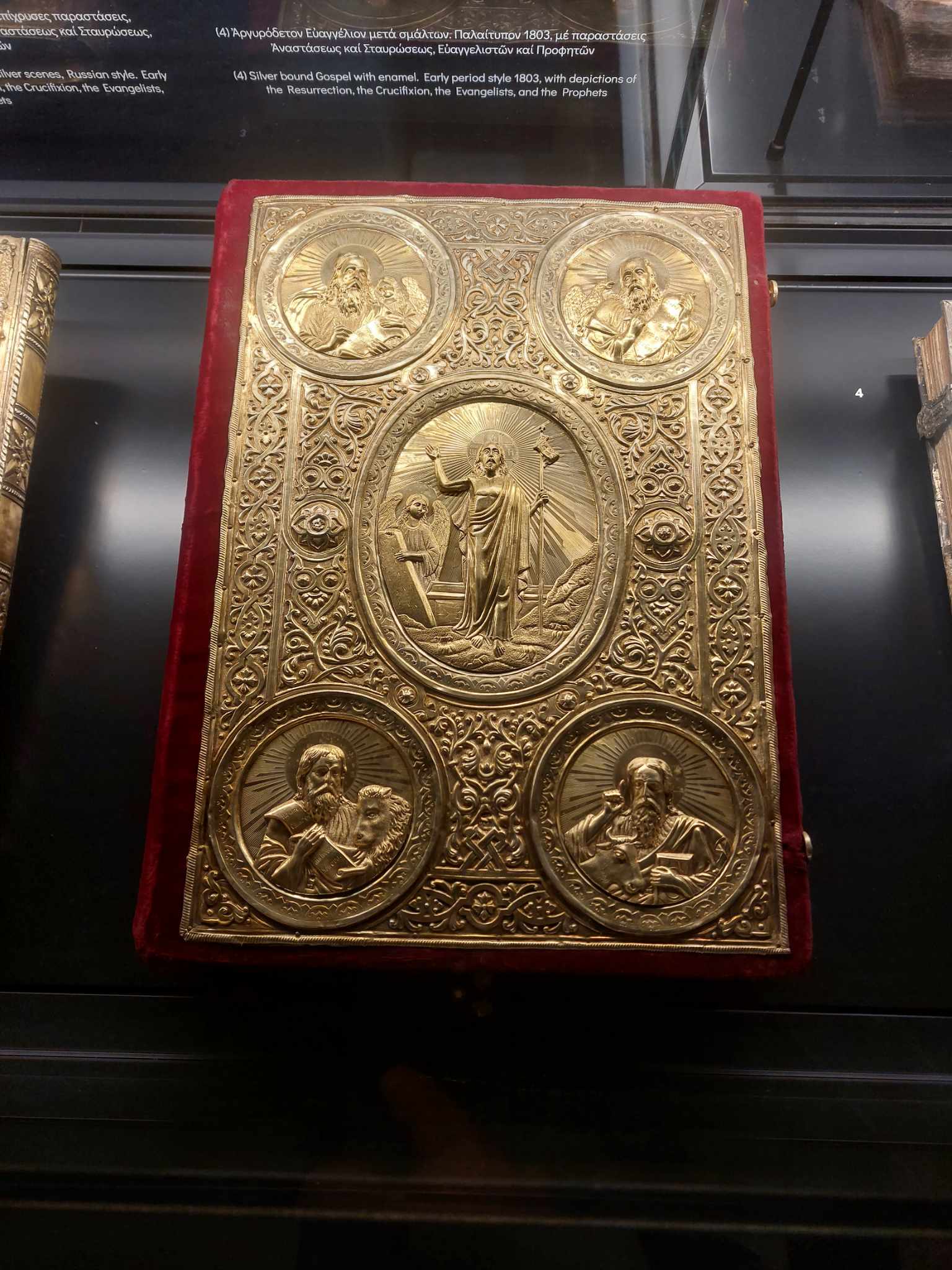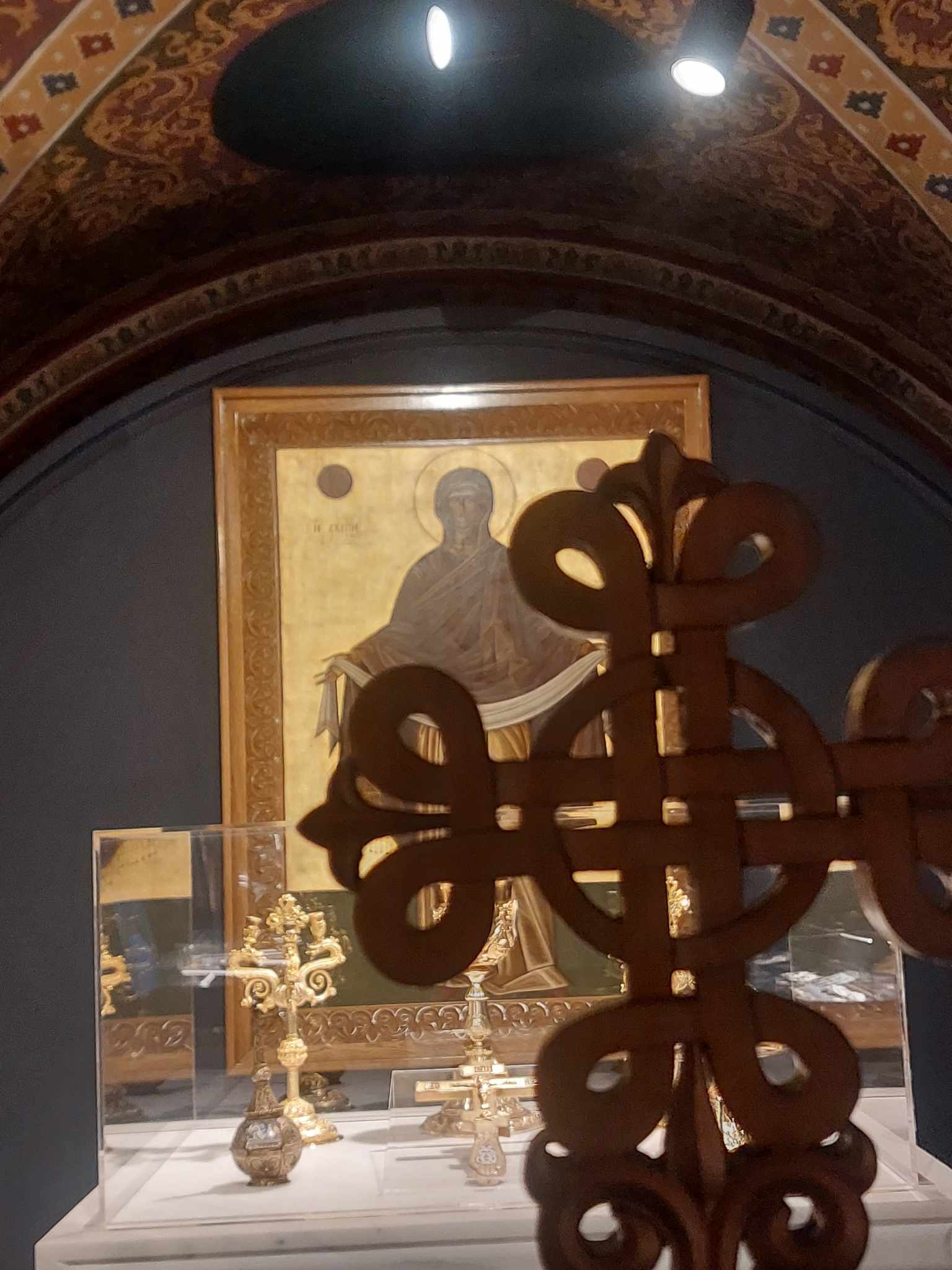 Στο μουσείο είδαμε μουσικά χειρόγραφα που γράφτηκαν πριν από εκατοντάδες χρόνια, ολόχρυσα ιερά δισκοπότηρα, βασιλικά δώρα προς τον ναό, Ευαγγέλια γραμμένα στα καραμανλίδικα, ακόμη και θρόνους στους οποίους εκκλησιάζονταν οι βασιλείς, τα περισσότερα εκ των οποίων ήταν δωρεές. Πολλά προέρχονταν από πρόσφυγες της Μικράς Ασίας, από τον Πόντο και την Κωνσταντινούπολη, όπως τα αριστουργήματα της φημισμένης κεντήστρας της Πόλης Δεσποινέτας, που χρονολογούνται από τον 17ο αιώνα και αποτελούν αντικείμενα μεγάλης ιστορικής αξίας, ή τα χρυσά κεντήματα της Πολίτισσας Κοκώνας του 19ου αιώνα. Άλλα έφτασαν εκεί από Έλληνες της Ρωσίας, της Δυτικής Ευρώπης, ακόμα και της Καλκούτας.