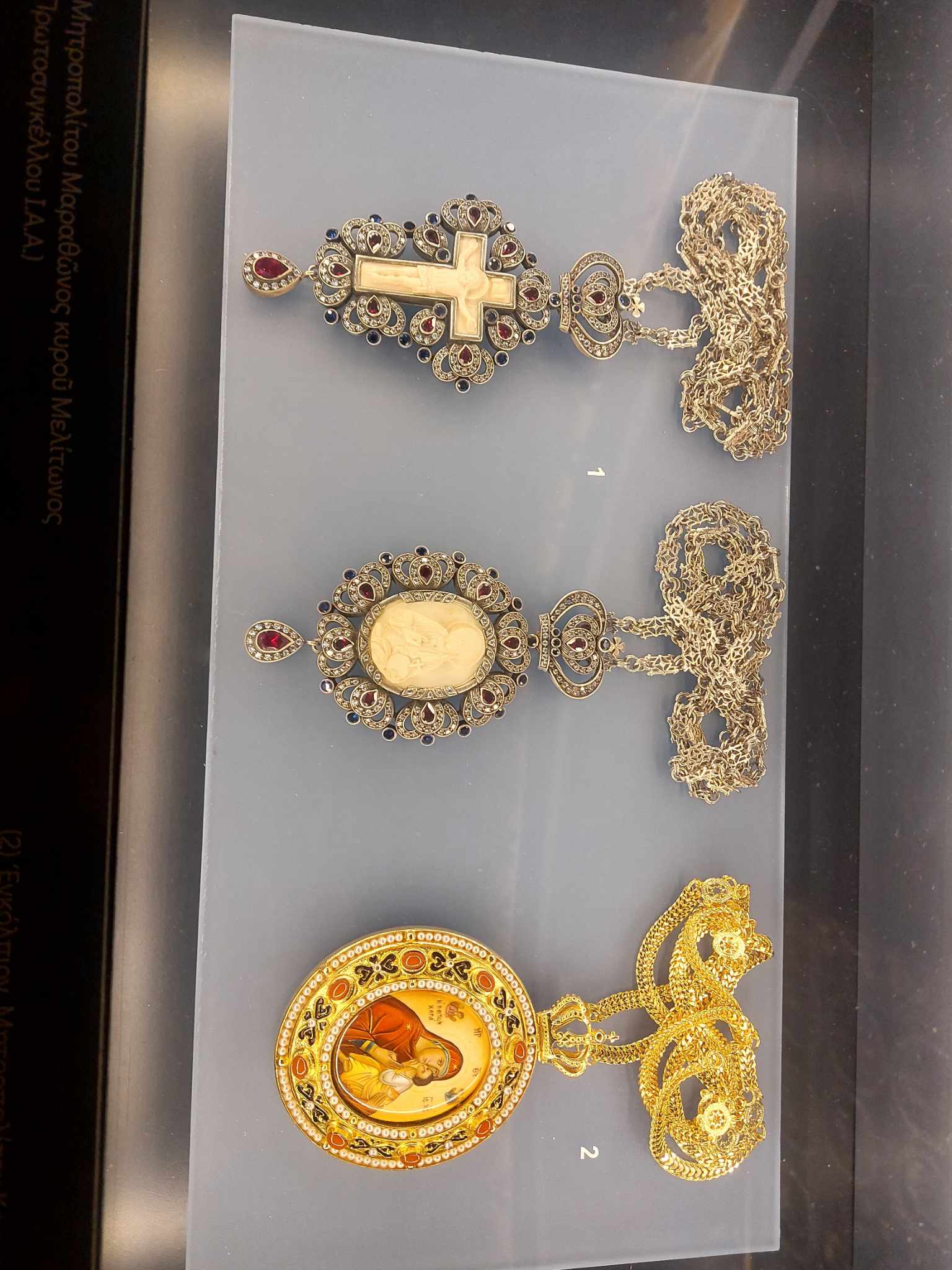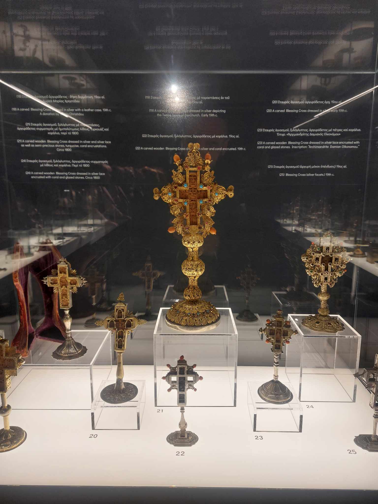 Ανάμεσα στα εκθέματα δεσπόζουσα θέση έχουν τα προσωπικά αντικείμενα Αρχιεπισκόπων, όπως του Σερεαφείμ, του Ιερώνυμου Α’, του Χριστόδουλου, το μαντίλι του Δωρόθεου Κοτταρά, μια χρυσή κούπα και το στυλό του Χρυσάνθου Β’, υπέρλαμπρες μίτρες, σταυροί, ράβδοι και εγκόλπια.