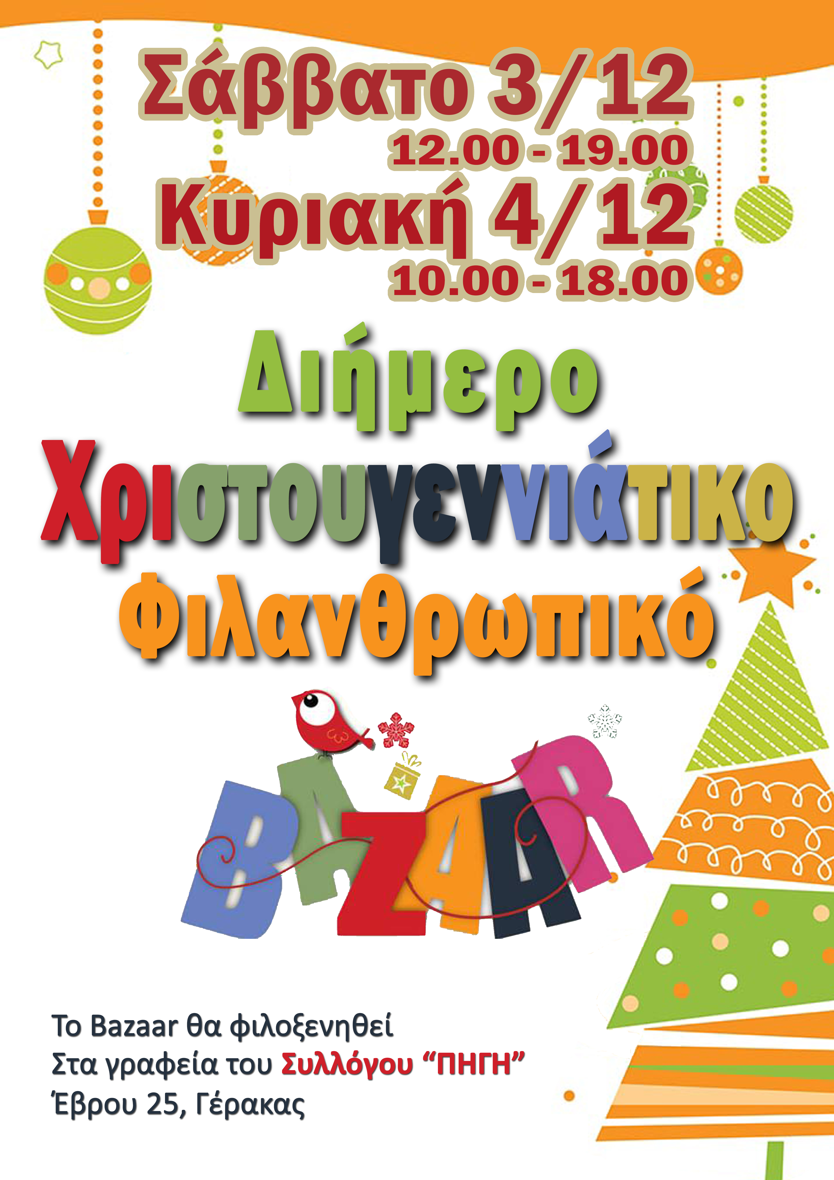 Ο Σύλλογος “Η ΠΗΓΗ” διοργανώνει Χριστουγεννιάτικο Φιλανθρωπικό Bazaar